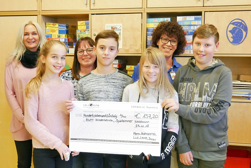 Waldbrunn/Würzburg (POW) Eine Spende von 157,20 Euro haben die Firmlinge Leon, Mara, Katharina und Jonas aus Waldbrunn Ende November an die Missio Kinderklinik in Würzburg übergeben.